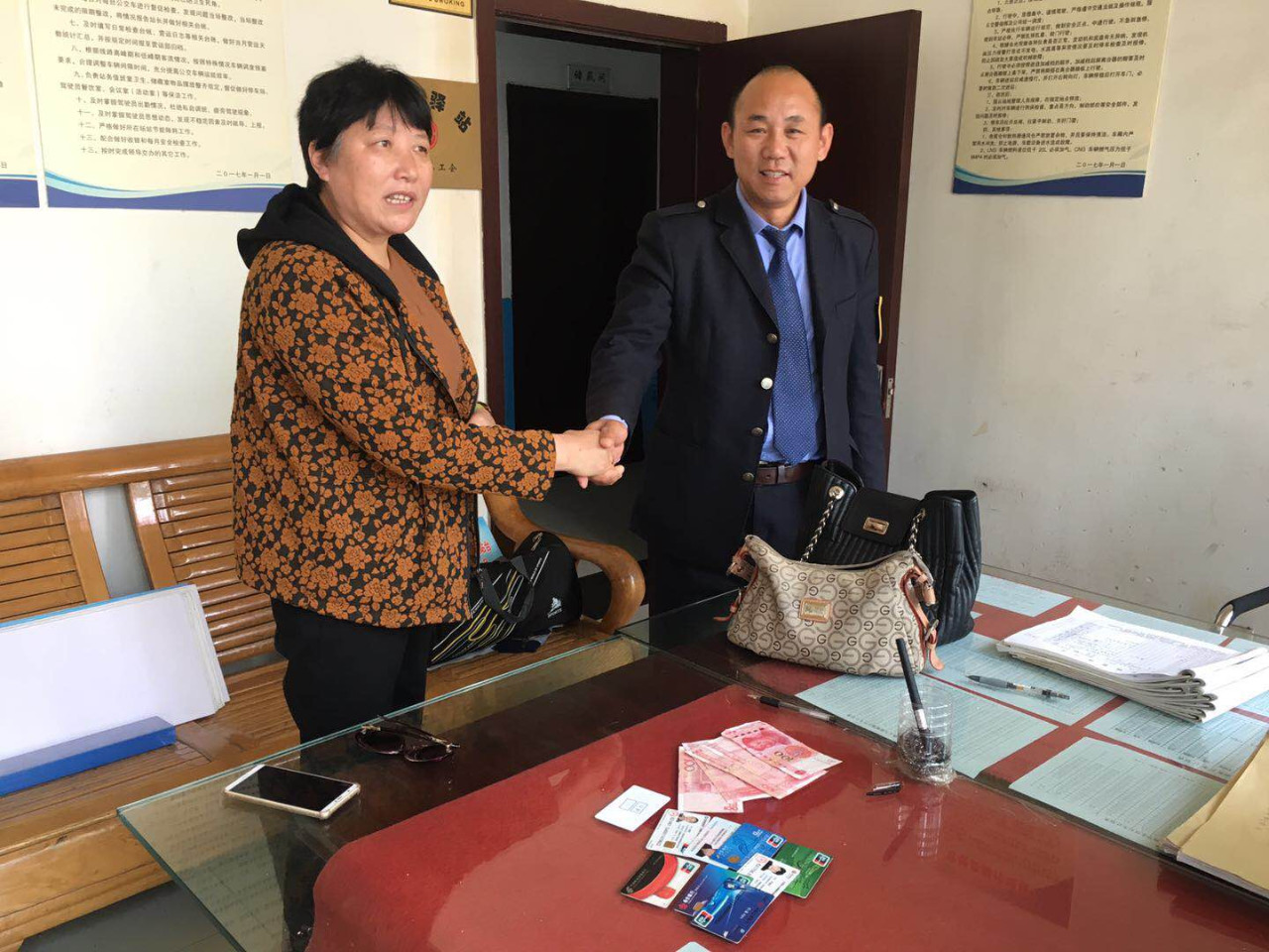 據(jù)了解,王女士從項(xiàng)里小區(qū)站乘坐蘇N11520公交車到達(dá)紅星美凱龍時(shí),因疏忽大意將隨身攜帶的手提包落在車內(nèi),包里有現(xiàn)金1500元、身份證、銀行卡數(shù)張。察覺(jué)到包丟了的王女士萬(wàn)分著急,通過(guò)撥打義烏商貿(mào)城站務(wù)室電話后得知落在車?yán)锏陌驯获{駛員董師傅撿到并交到站務(wù)室。