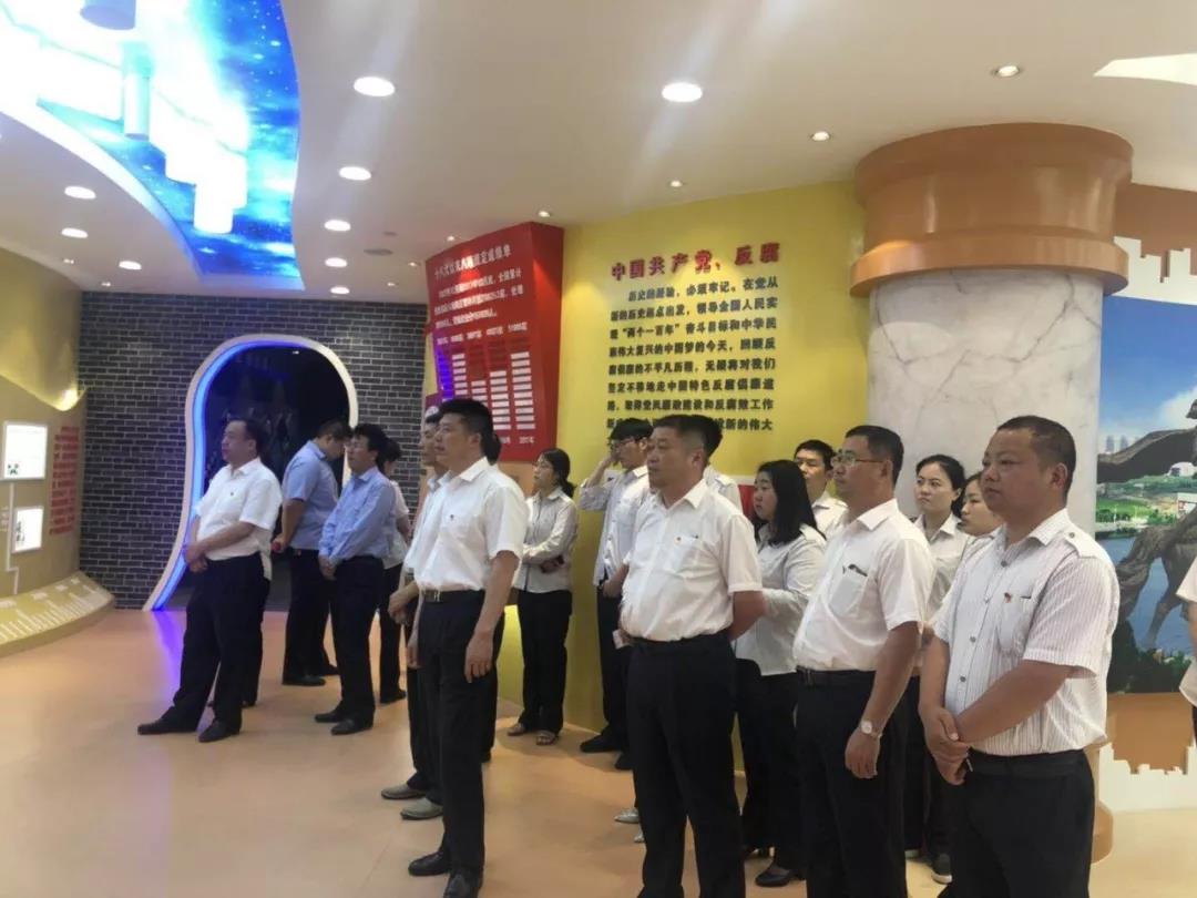 在廉政教育中心,全體人員在講解員的帶領下,依次參觀“時代之風”、“激濁之行”、“信仰之力”、“騰飛之路”展廳,認真參觀了廉政教育展覽,系統(tǒng)學習了中國反腐倡廉的歷史進程,隨后還觀看了身邊貪腐干部的犯罪警示片,心靈上受到強烈震撼。一塊塊展板、一幕幕鏡頭、一聲聲懺悔、一句句告誡,給大家上了一堂生動的廉政警示教育課, “舉黨旗 立廉本”、“肅法紀 振黨威”、“承廉脈 明鏡鑒”等標語鮮明醒目,用無聲的力量時刻提醒著大家要不忘初心、牢記使命,永葆清正廉潔本色。