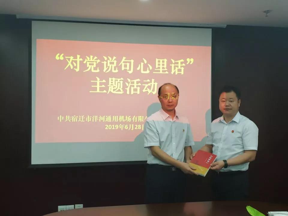 在中國(guó)共產(chǎn)黨成立98周年之際,為深入貫徹落實(shí)習(xí)近平新時(shí)代中國(guó)特色社會(huì)主義思想和黨的十九大精神,6月28日,宿遷市洋河通用機(jī)場(chǎng)有限公司黨支部開(kāi)展“對(duì)黨說(shuō)句心里話(huà)”主題活動(dòng),激勵(lì)和鼓舞全體黨員“不忘初心、牢記使命”,立足本職崗位,為宿遷交通運(yùn)輸事業(yè)發(fā)展貢獻(xiàn)力量。