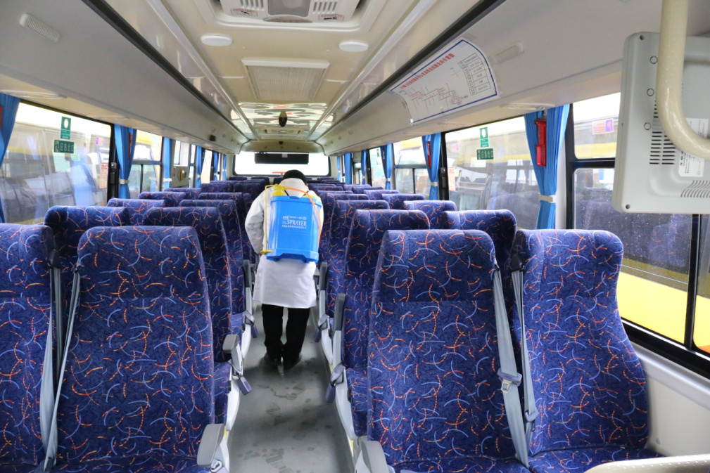 嚴(yán)把車輛消毒關(guān)。對(duì)車輛進(jìn)行全方位的消毒和清潔,為每臺(tái)車配備噴壺和消毒水,要求駕駛員做到一天兩消毒,力求做到疫情防控零死角、零盲區(qū),座椅、地板、車窗等乘客接觸頻繁的位置進(jìn)行重點(diǎn)消毒。