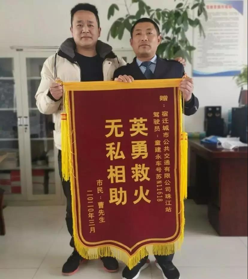 3月11日,市民曹先生來到宿豫區(qū)珠江路調度站,向106路蘇N11618公交駕駛員童建永贈送錦旗,感謝他在危急時刻挺身而出。
