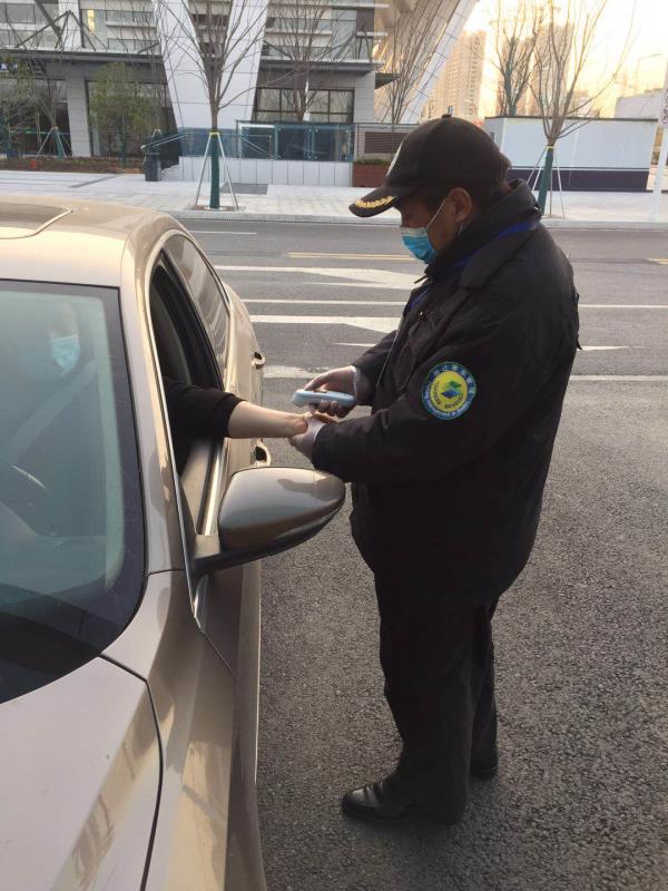 每天早上上班前,趙愛軍自己測量體溫,然后戴好口罩、手套;工作期間,發(fā)現(xiàn)有人員聚集情況,他及時過去勸導(dǎo)疏散;下班后,他細(xì)心地對停車場進(jìn)行消毒。