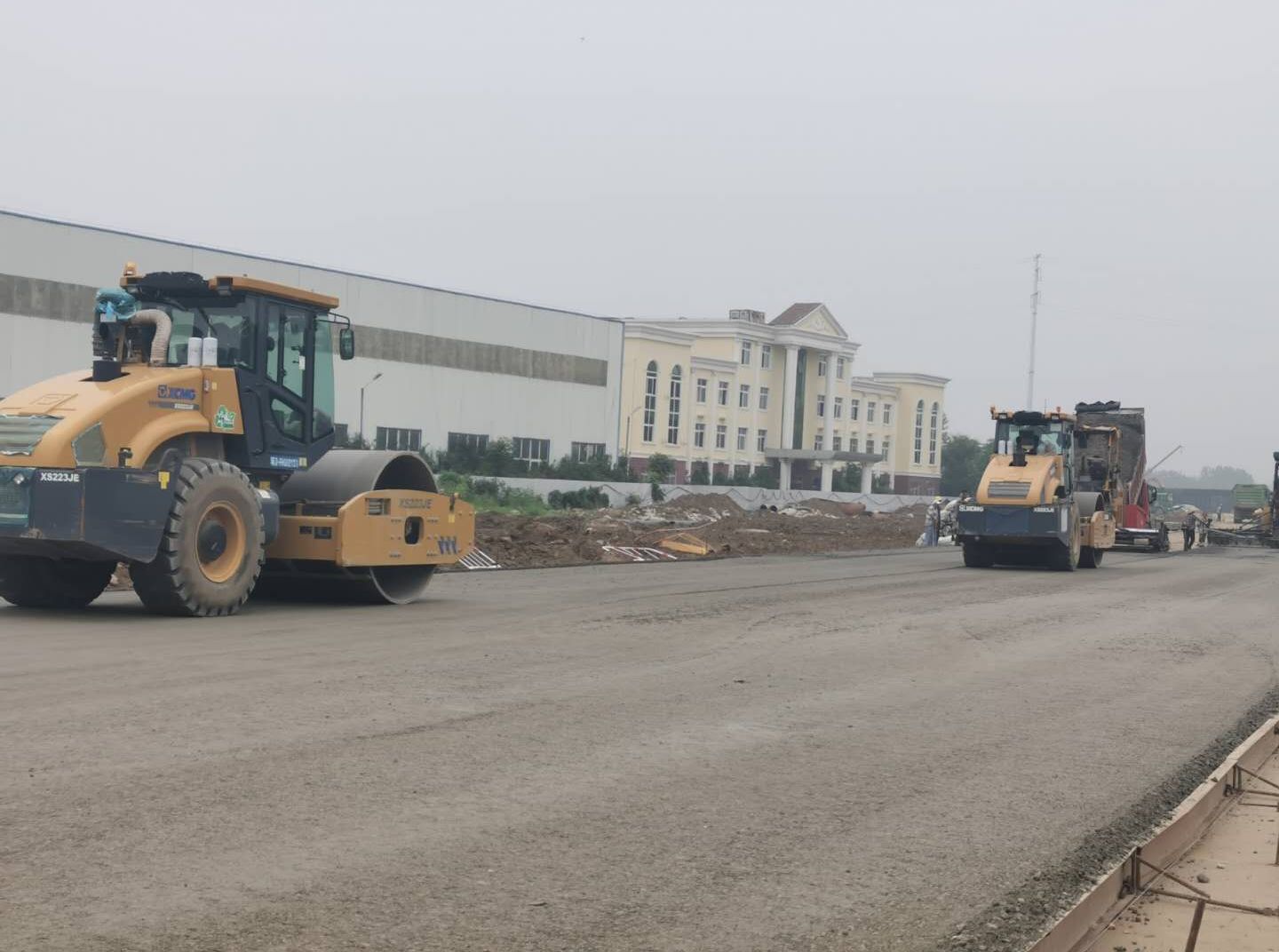 【高鐵公司】上海路(高鐵站連接線)改造二期工程順利完成水穩(wěn)碎石基層試鋪段