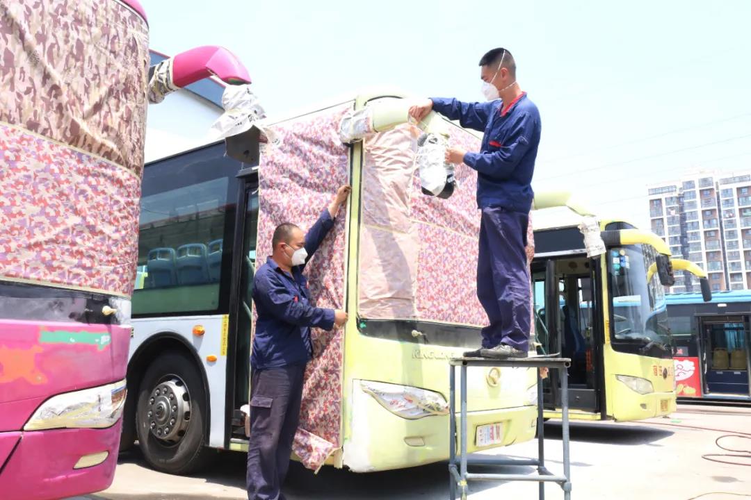 5月31日下午,經(jīng)過(guò)兩天的努力,3輛“穿上新衣”的公交車(chē)駛出公交公司修理廠(chǎng),滿(mǎn)載乘客奔馳在街道上。