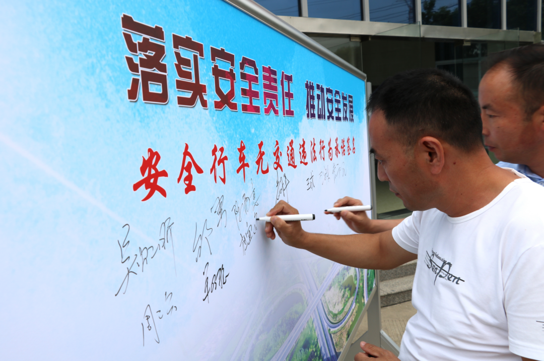 曹方民同志作為駕駛員代表,對做好交通安全出行發(fā)出倡議,隨后大家紛紛在承諾墻上簽下自己的承諾簽名。