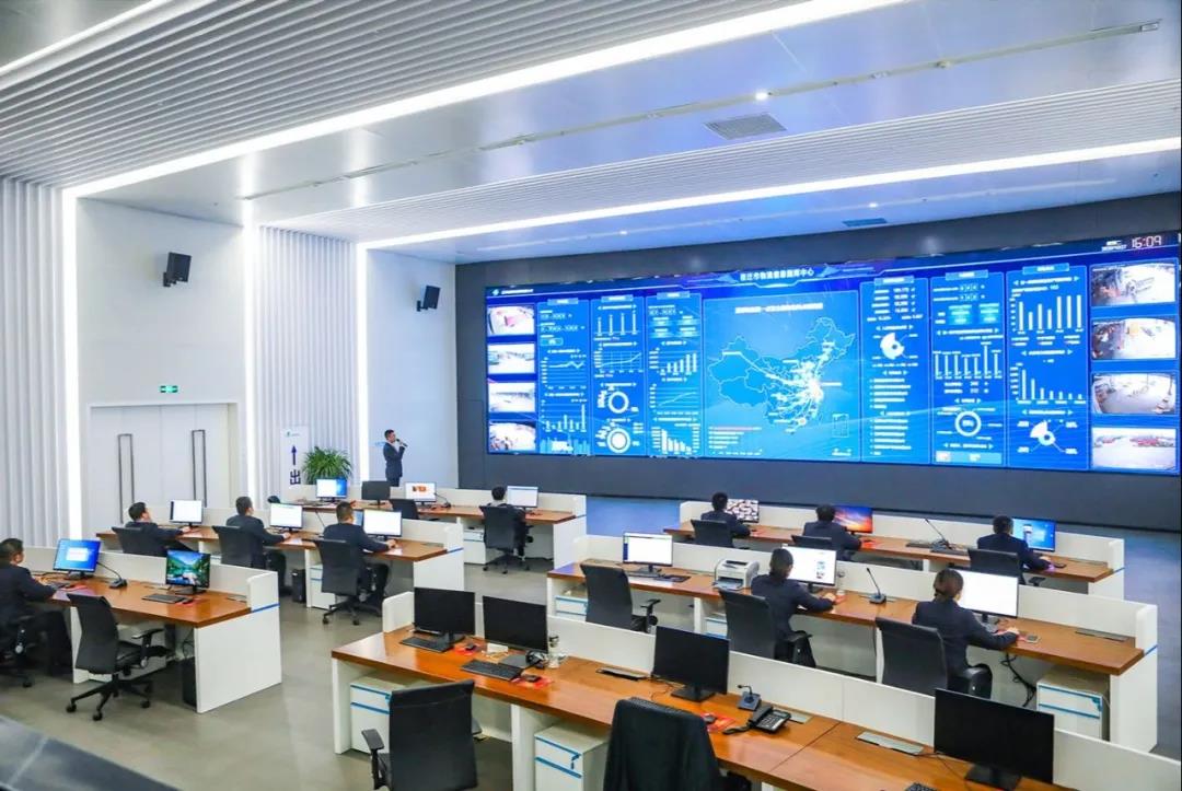 一面大屏,占據(jù)了江蘇通湖物流園有限公司信息服務(wù)中心整整一面墻。