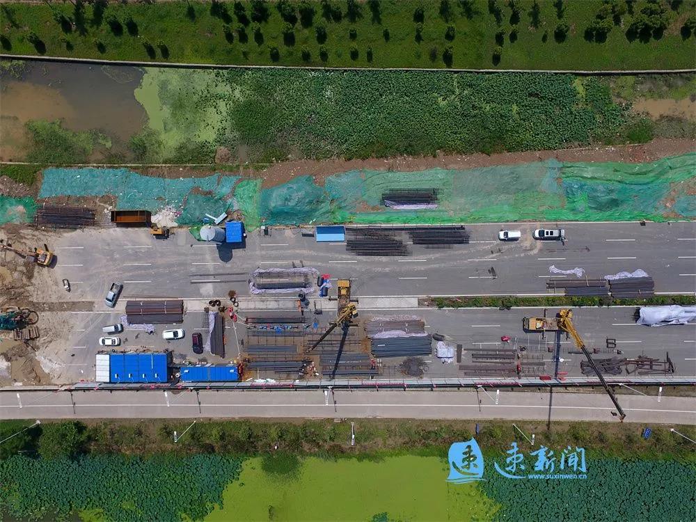 道路主線采用城市快速路標(biāo)準(zhǔn),設(shè)計(jì)速度80公里/小時(shí),輔路采用城市主干路標(biāo)準(zhǔn),設(shè)計(jì)速度50公里/小時(shí)。全線結(jié)構(gòu)物主要包括主線高架橋、跨京杭運(yùn)河特大橋、跨西楚大道和張家港大道互通等。