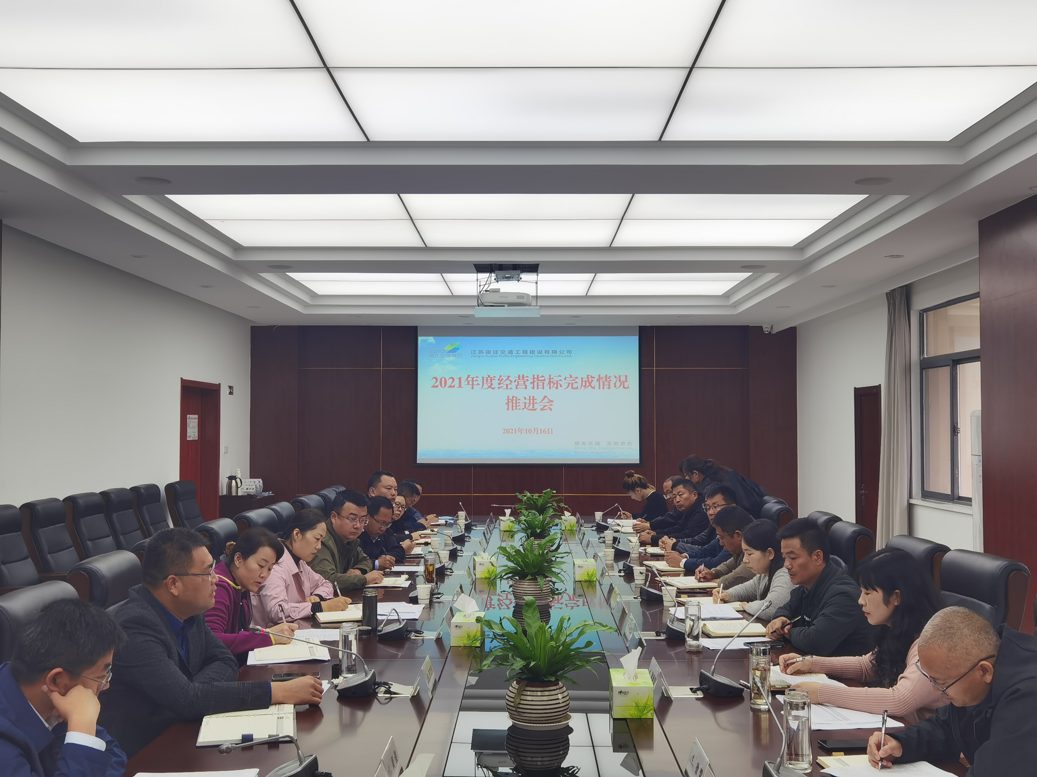 10月16日, 宿遷交建召開2021年度經(jīng)營目標推進會,對照全年目標任務,全面檢查指標完成情況,查漏補缺,動員全體,全力沖刺年度目標任務。