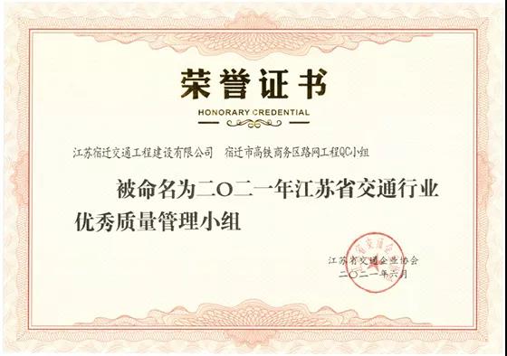 【宿遷交建】宿遷交建三項目榮獲“江蘇省交通行業(yè)優(yōu)秀質(zhì)量管理小組”稱號