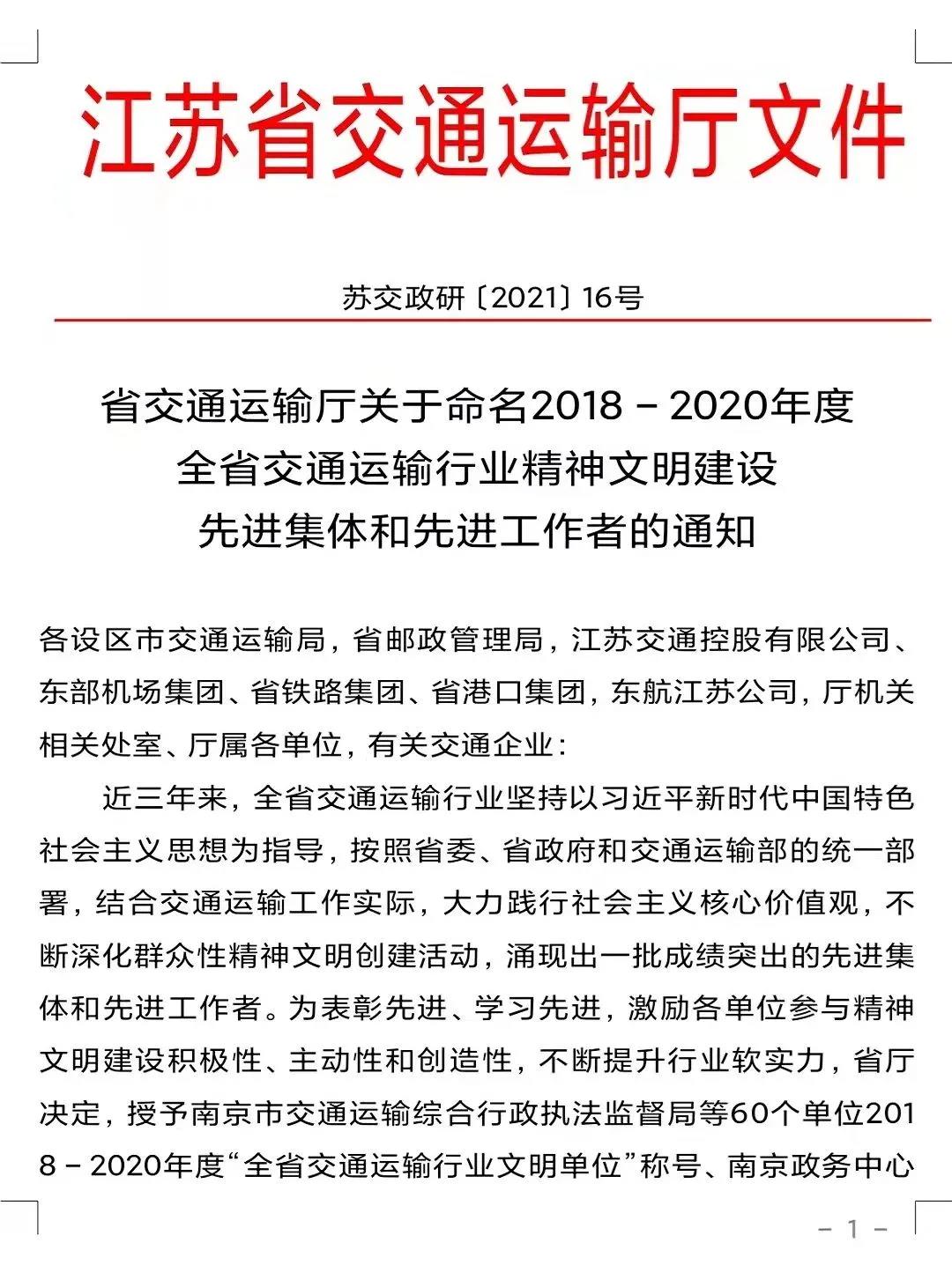 【公交公司】公交公司榮獲“2018-2020年度全省交通運(yùn)輸行業(yè)精神文明建設(shè)先進(jìn)集體”稱號(hào)