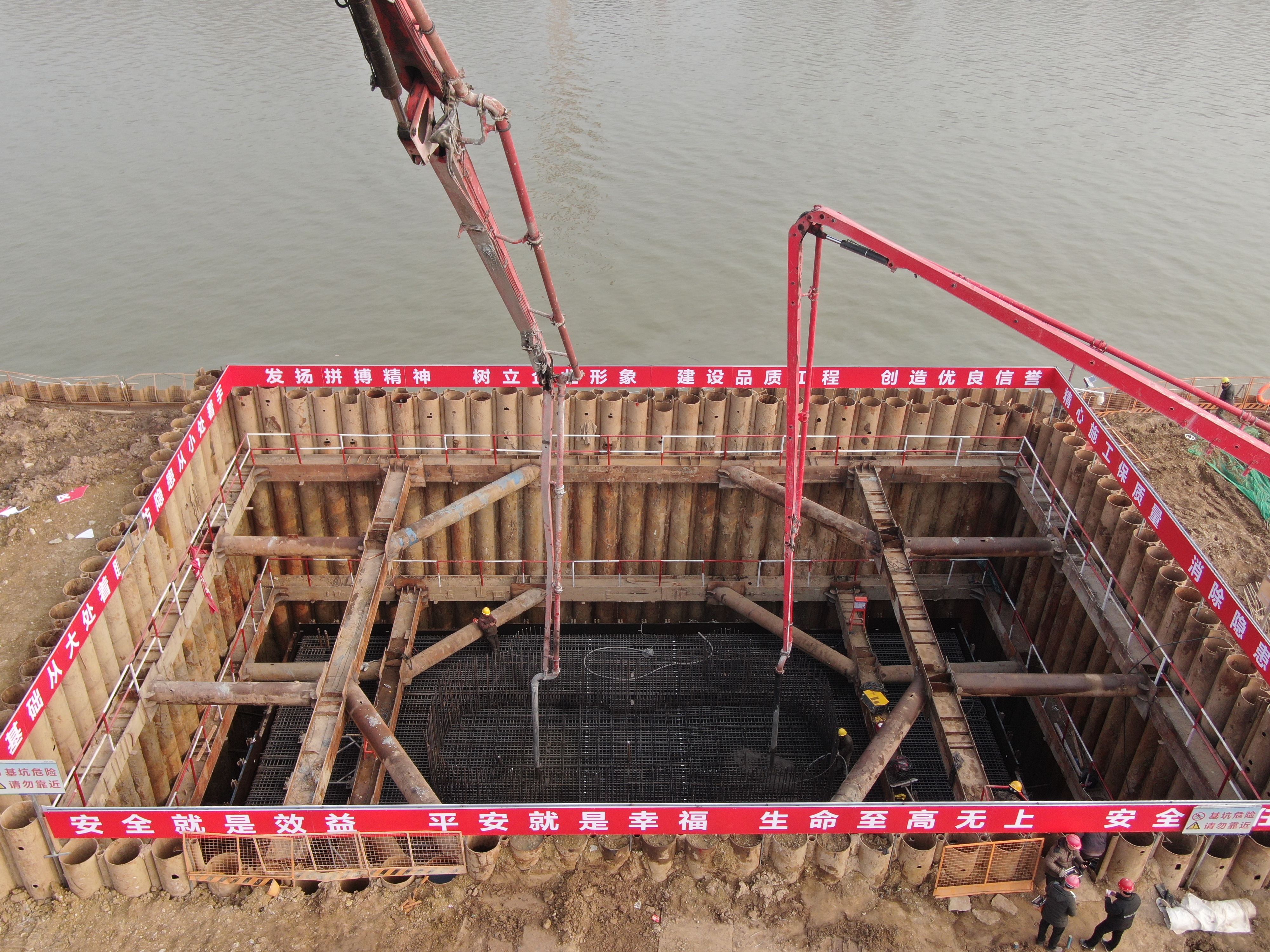 【宿遷交建】268省道宿遷段工程(洋河新區(qū)段)京杭運(yùn)河特大橋16#主墩承臺(tái)完成澆筑