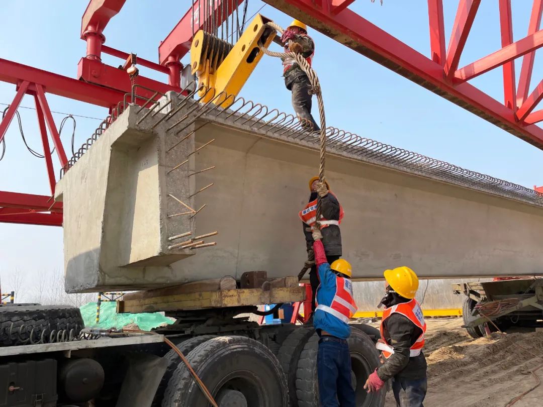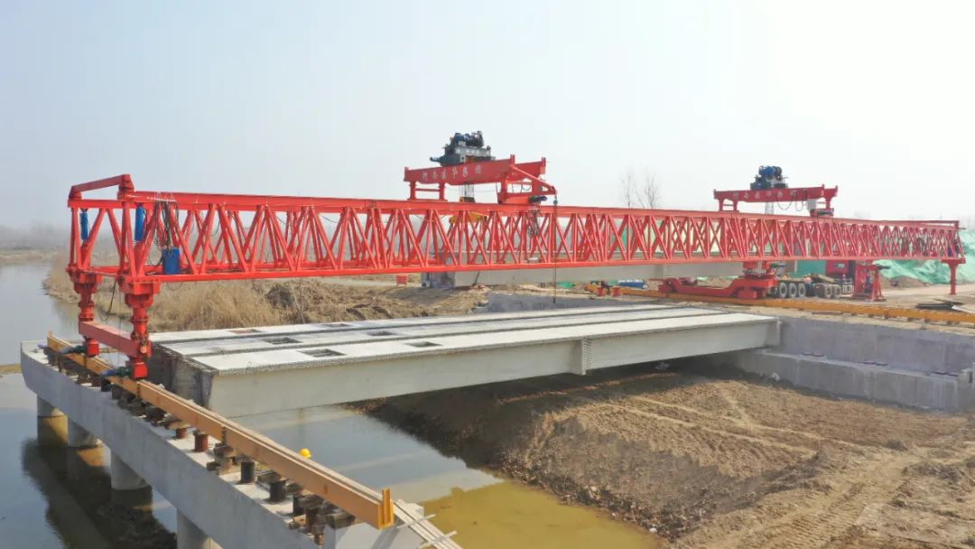 【宿遷交建】宿遷交建成功架設皂河龍運大道提升改造工程首片預制箱梁