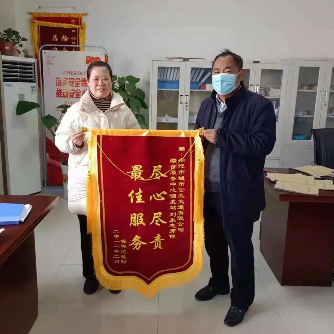 近日,市民錢(qián)先生將一面寫(xiě)有“盡心盡責(zé),最佳服務(wù)”的錦旗送到了公交公司綜合服務(wù)中心調(diào)度站,感謝K202路駕駛員劉永志三個(gè)月前的見(jiàn)義勇為、熱心相助。