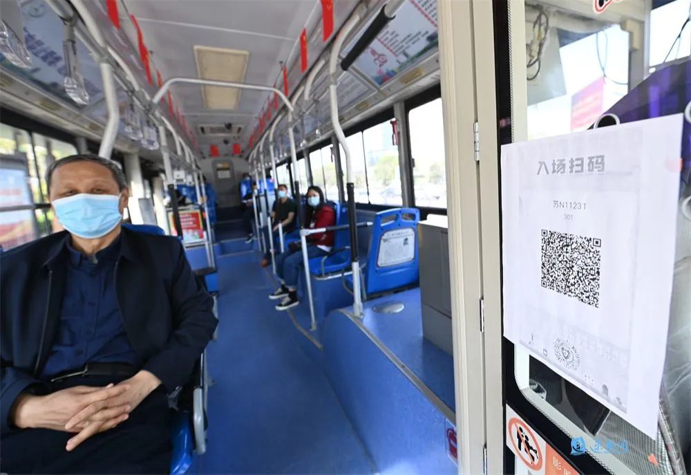 4月11日早上,在宿遷市區(qū)洪澤湖路上,301路公交車準點駛?cè)胨捱w日報社站點,市民通過“宿康寶”掃場所碼乘車。當日,市區(qū)恢復運營52路、53路、62路、81路、92路、108路、109路、K202路、301路、302路、303路、304路公交線路,線路運營時間從早上7點到晚上19點,班車間隔20-30分鐘。