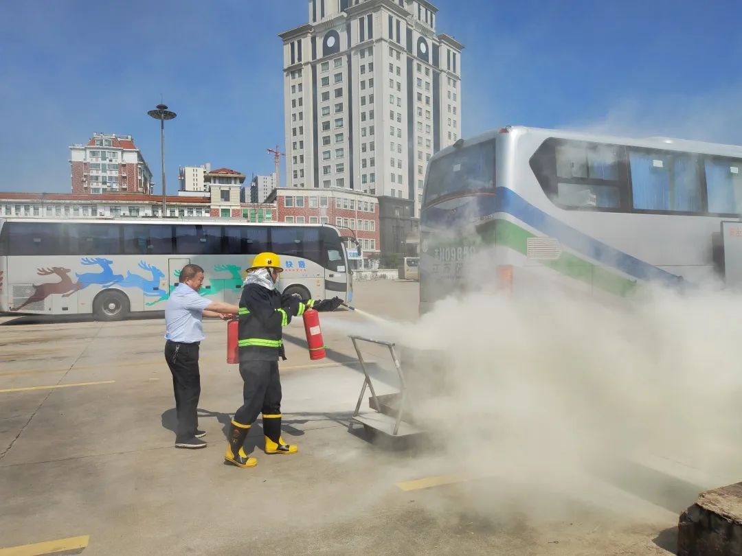 演練過程中,以客車突發(fā)“火災(zāi)”為背景案例,隨著濃煙升起,駕駛員迅速停車打開車門,快速有序疏散車上旅客至安全地帶,然后關(guān)掉電源取下隨車滅火器,對(duì)準(zhǔn)著火部位正面根部噴射,撲滅火災(zāi),并迅速立即撥打119消防部門報(bào)警,真正做到即停車、人撤離、速報(bào)警的演練目標(biāo)要求,達(dá)到了預(yù)期效果。