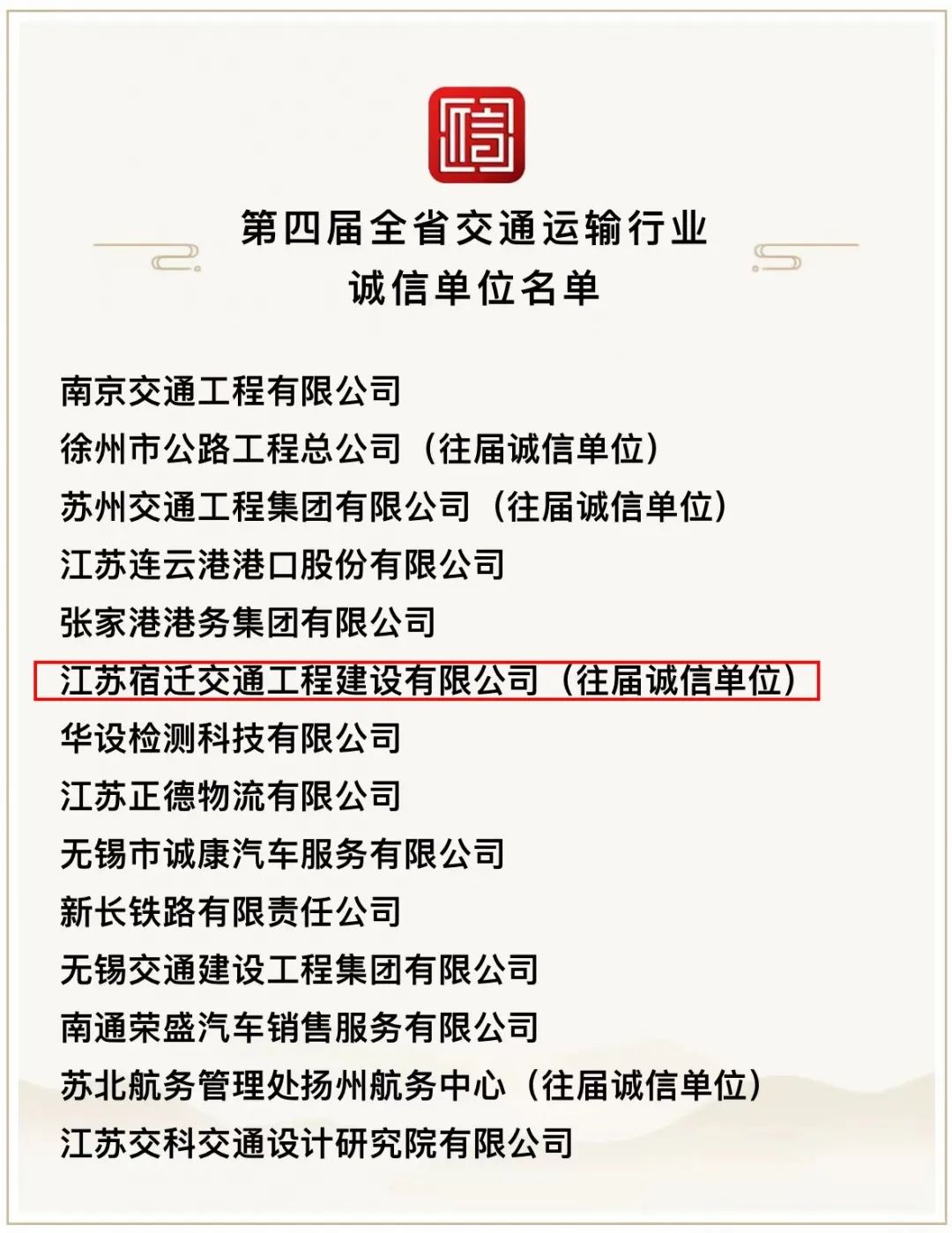 【宿遷交建】再獲第四屆全省交通運(yùn)輸行業(yè)誠(chéng)信單位