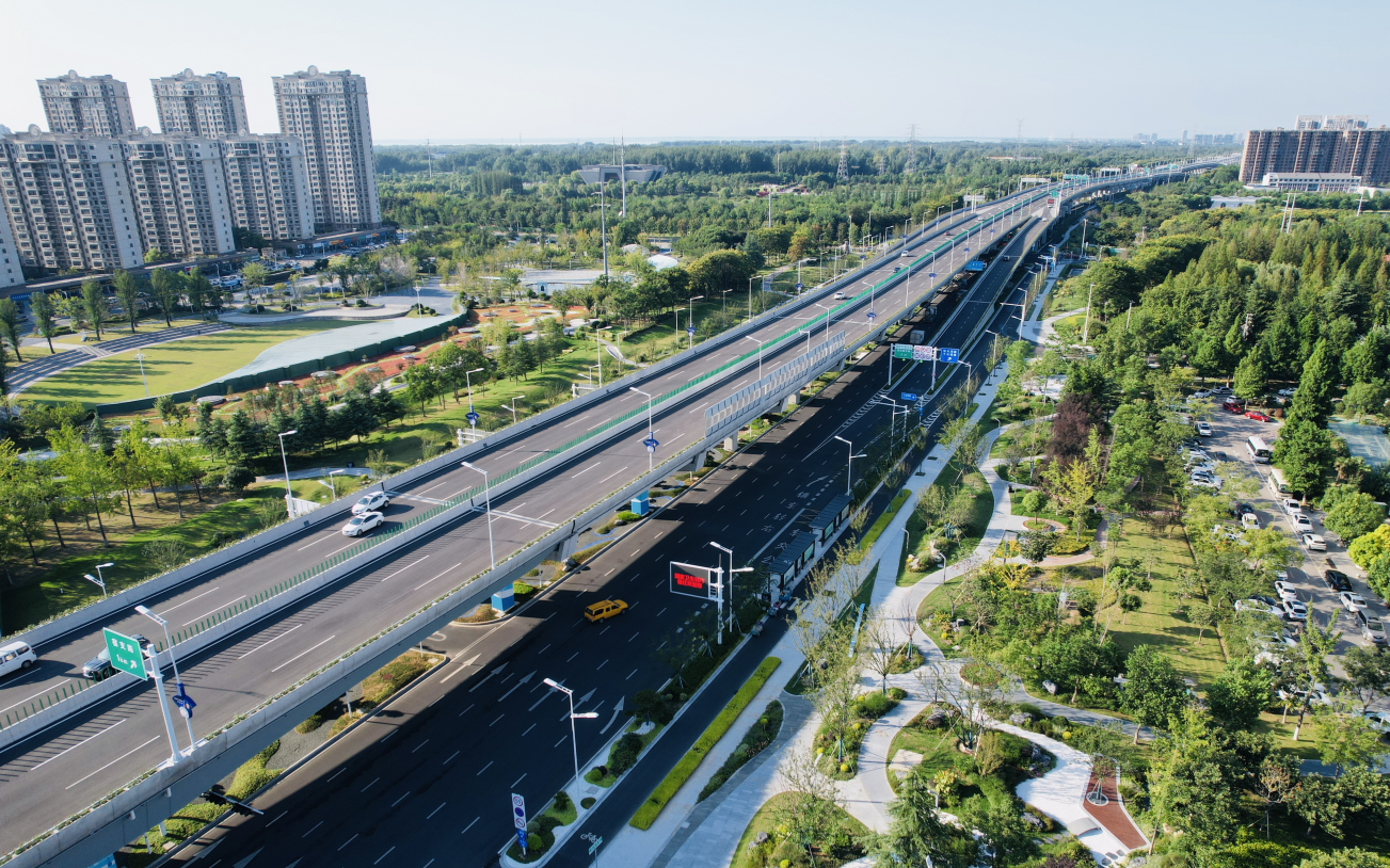 此次高鐵公司獲獎的“城市預(yù)制裝配式橋梁高性能結(jié)構(gòu)體系與快速建造技術(shù)研究”主要應(yīng)用于宿遷市迎賓大道二期快速化改造工程,預(yù)制裝配率達(dá)到85.4%,成為江蘇省首個(gè)全裝配式城市快速路改造項(xiàng)目。實(shí)施預(yù)制裝配、智能建造不僅實(shí)現(xiàn)了結(jié)構(gòu)輕量化、設(shè)計(jì)集約化、拼裝高效化、連接長效化、管控智能化,而且能夠滿足城市密集區(qū)高架橋建設(shè)對環(huán)境干擾少、施工工期短、耐久性能好、安全韌性強(qiáng)的總體要求。經(jīng)中國交通運(yùn)輸協(xié)會組織專家委員會鑒定,該成果總體上達(dá)到國際領(lǐng)先水平,經(jīng)濟(jì)社會效益顯著,推廣應(yīng)用前景廣闊。迎賓大道二期快速化改造工程作為宿遷市快速路網(wǎng)“二環(huán)十射”的重要組成部分,項(xiàng)目建成通車后,極大緩解了中心城區(qū)的交通壓力,增強(qiáng)了中心城市集聚和輻射功能,在2023年度市政府100個(gè)民生實(shí)事項(xiàng)目中獲得好評率99.5%,位列第二。