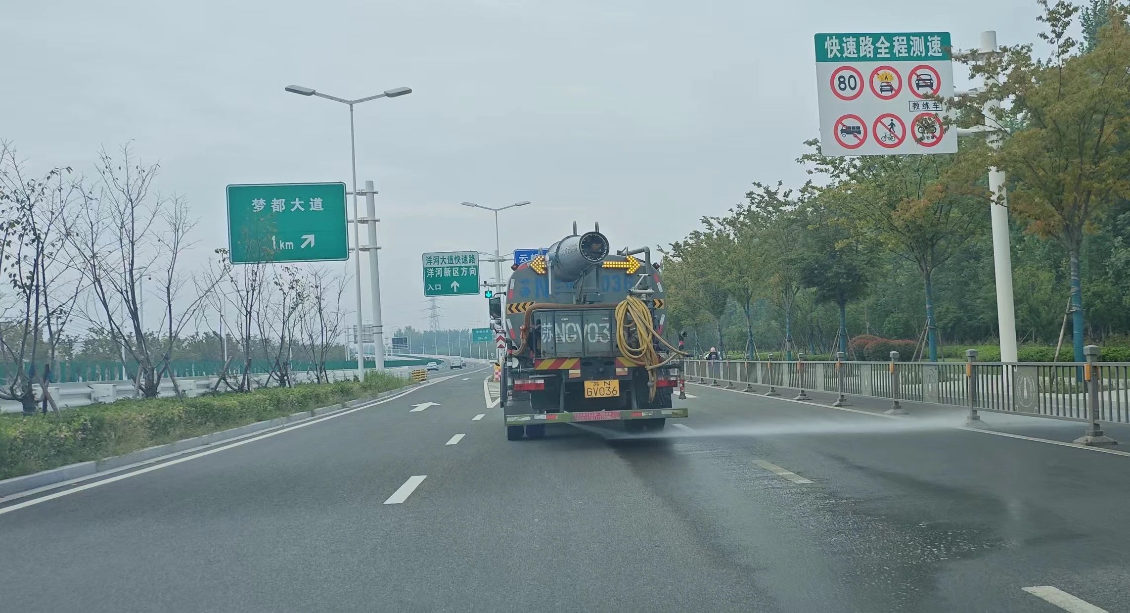 加大路面保潔力度,對路面保潔實行常態(tài)化和動態(tài)化管理,采取清掃車、洗掃車、水車重點保潔與日常保潔相結(jié)合的清掃方式,對路肩、邊坡、匝道、橋梁等區(qū)域白色垃圾、石子漏撒等進(jìn)行及時清理,不留死角,確保沿線養(yǎng)護(hù)保潔不斷線,路容路貌始終整潔干凈。