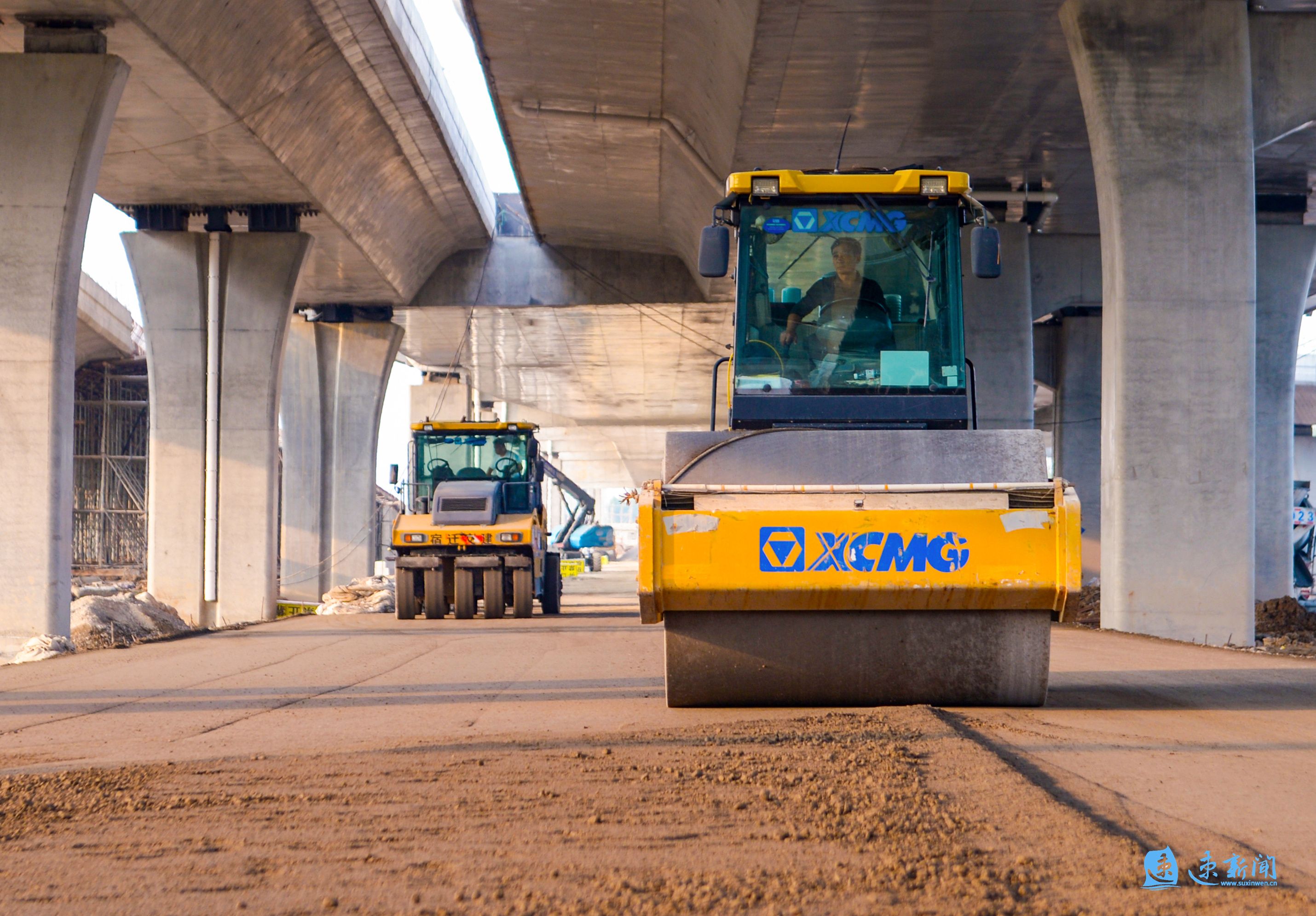 10月15日,在宿豫區(qū)酒都路快速化改造工程現(xiàn)場(chǎng),施工器械不停運(yùn)轉(zhuǎn),工人正在緊張施工,一派熱火朝天的景象。