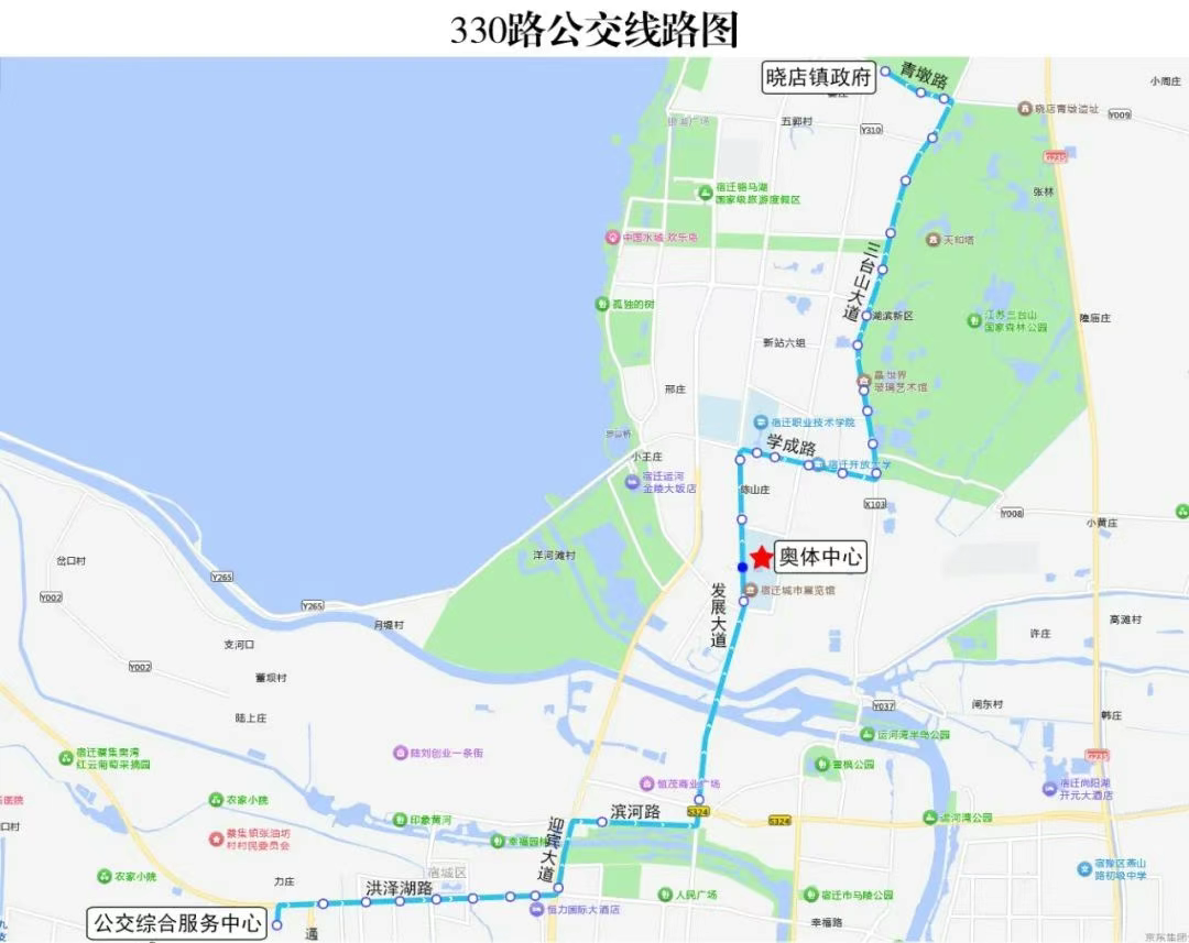 具體線路:洪澤湖路--發(fā)展大道--奧體路--會(huì)展中心(奧萊廣場)