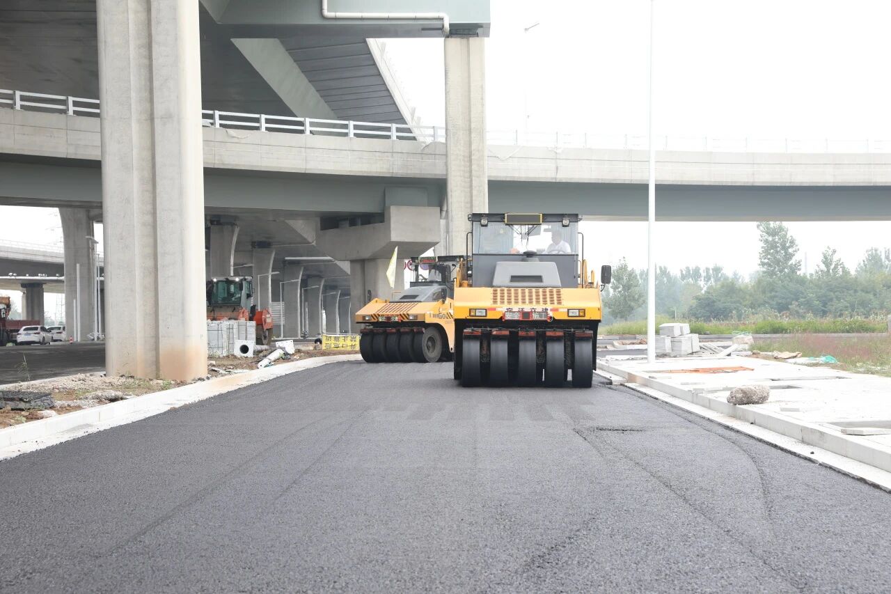 針對項目區(qū)段多、橋梁通道分散、線路寬度變化大、路口密集等施工難點,項目部通過“設備升級+人員聯(lián)動”破解難題。一方面,投入4臺攤鋪機、4臺鋼輪壓路機、4臺膠輪壓路機、1臺小鋼輪、1臺裝載機及3臺水車,組建高效作業(yè)設備集群,保障連續(xù)施工;另一方面,組織技術、質(zhì)量、安全、測量、試驗等多崗位人員成立專項工作組,實行“齊抓共管、動態(tài)監(jiān)控”機制,實時解決施工中的技術難題與安全隱患,確保路面施工在高效推進的同時,嚴守安全與質(zhì)量底線。