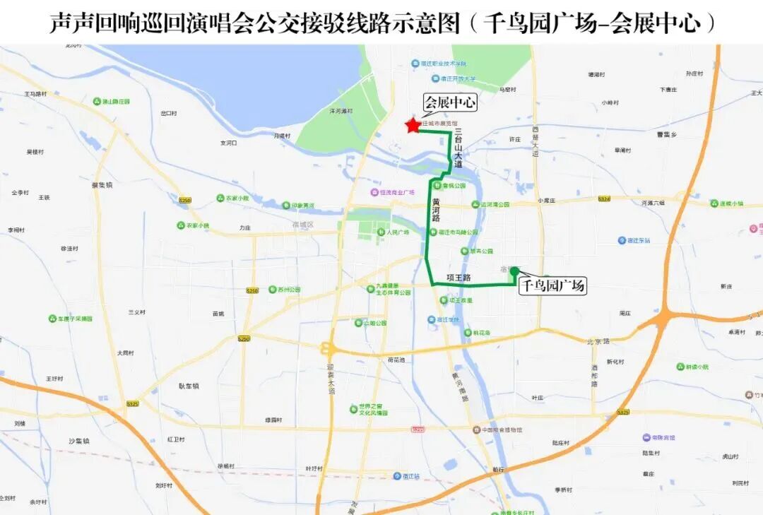 線路一:宿豫區(qū)千鳥園廣場接駁點(diǎn)