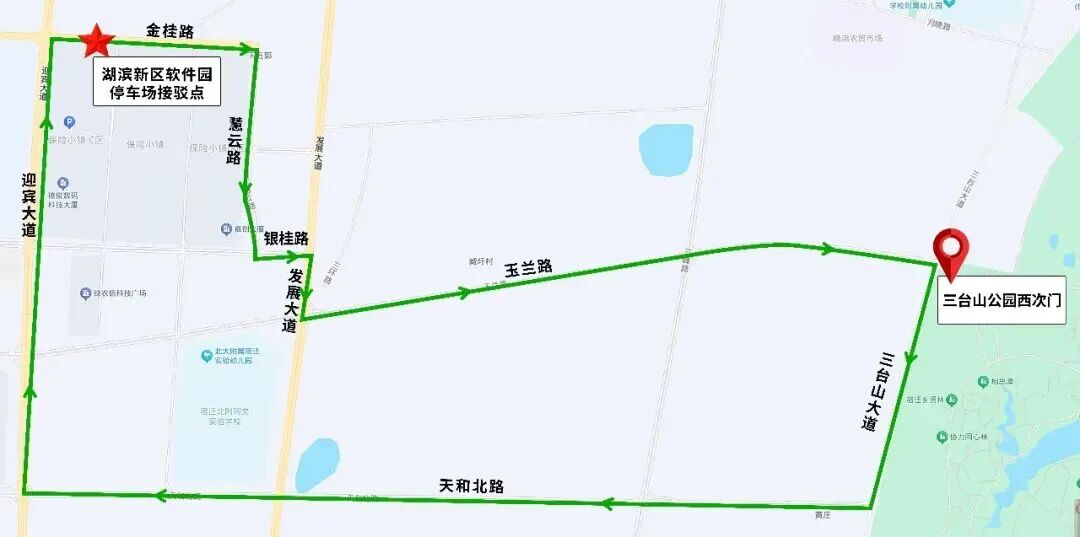 線路三:湖濱新區(qū)軟件園停車場三臺山景區(qū)西次門